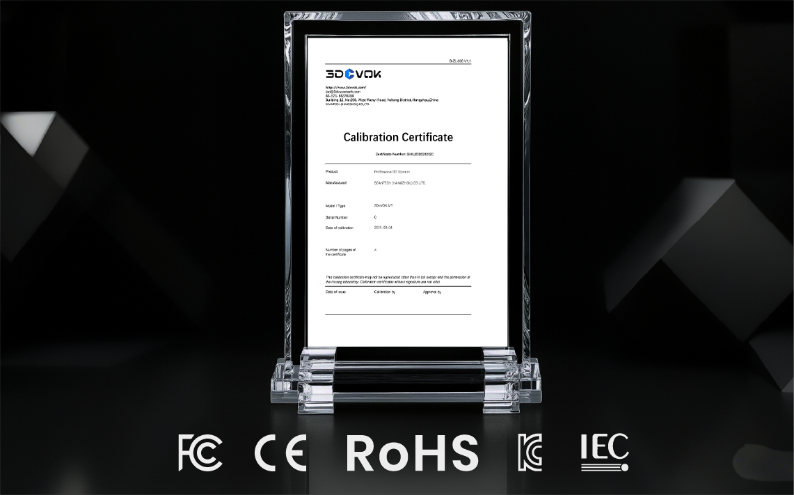 The MT Gen2 is built on 3DeVOK’s industrial-grade technology lineage. Each unit is certified to a broad set of international standards including CE-EMC, FCC, RoHS, IEC 60825, IEC 62471, WEEE, and KC, and ships with a factory-issued calibration certificate as standard. For users working in regulated environments or quality assurance workflows, this traceability matters: the certificate provides documented evidence of the scanner’s measured accuracy at the point of manufacture, giving teams a solid foundation for standing behind their measurement data.